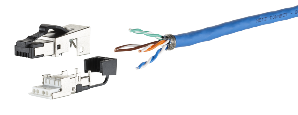 最強の組み合わせ、ノイズに強い金属製RJ45組み立て式プラグ+CAT7A単芯ケーブル。